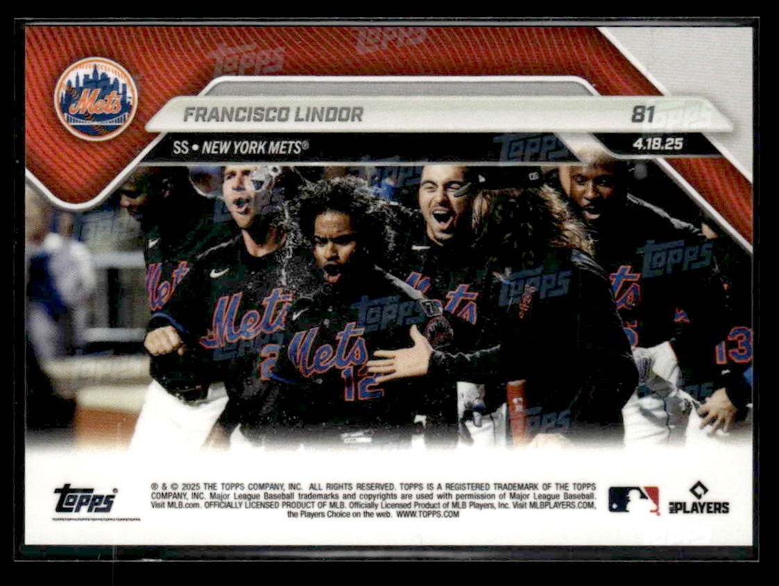 2025 Topps Now #81 Francisco Lindor 250th Career Walk-Off HR