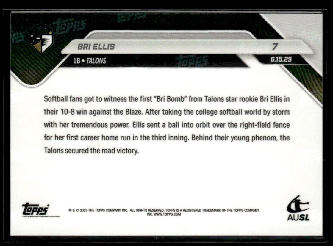 Bri Ellis β 2025 Topps 2025 Topps Now AUSL Rookie Hits 1st Pro Home Run