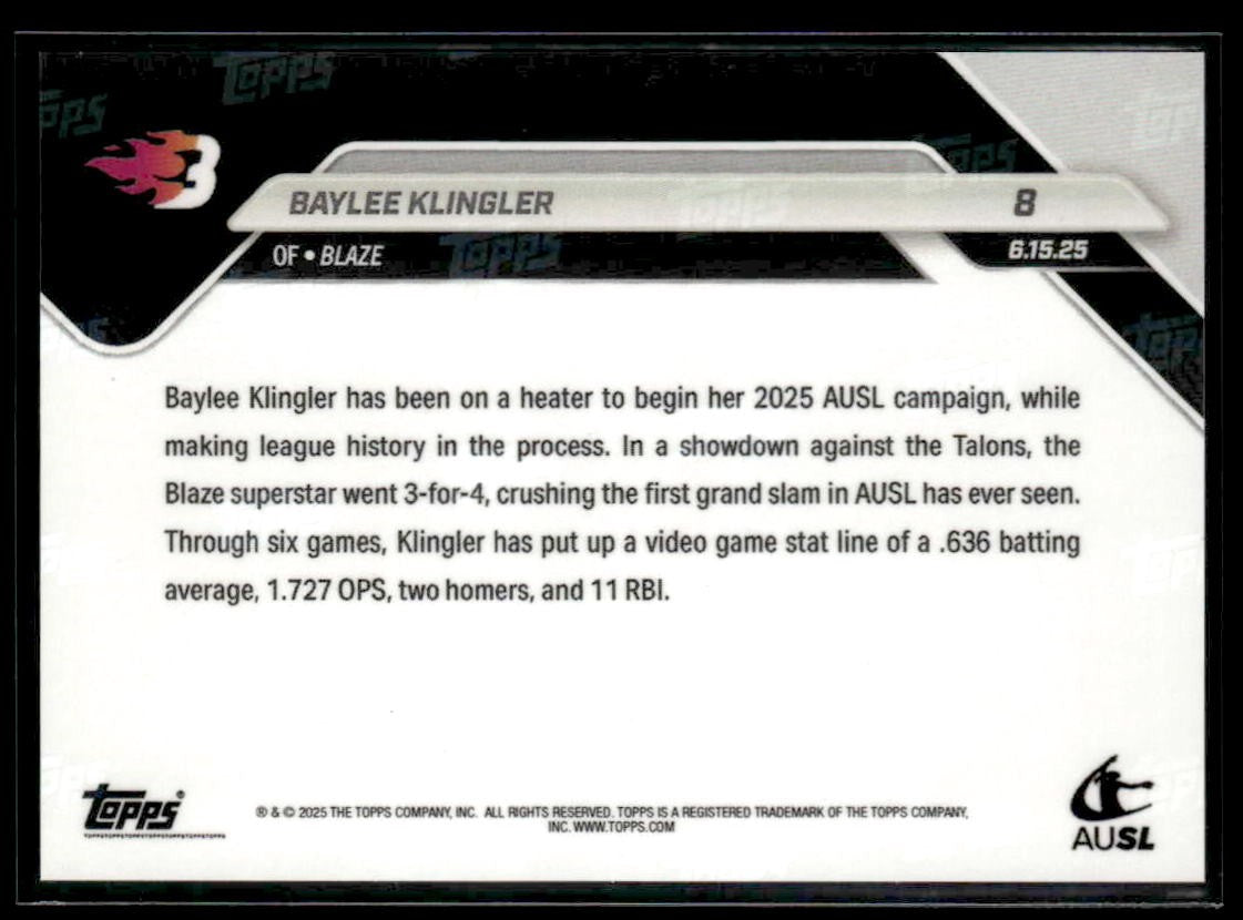 Baylee Klingler β 2025 Topps 2025 Topps Now AUSL 1st Grand Slam in AUSL History