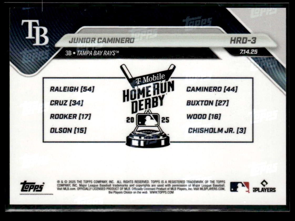 This is a sharp example of the 2025 Topps Now Home Run Derby #HRD-3 featuring Junior Caminero.