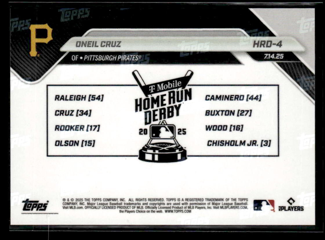 This is a sharp example of the 2025 Topps Now Home Run Derby #HRD-4 featuring Oneil Cruz.