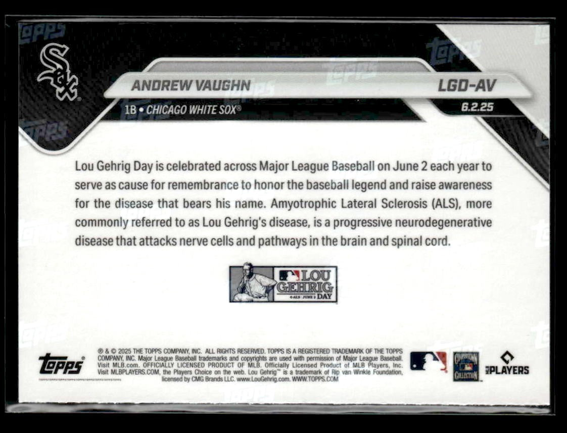 Andrew Vaughn β 2025 Topps 2025 Topps Now Lou Gehrig Day: Presented by Sarah Langs