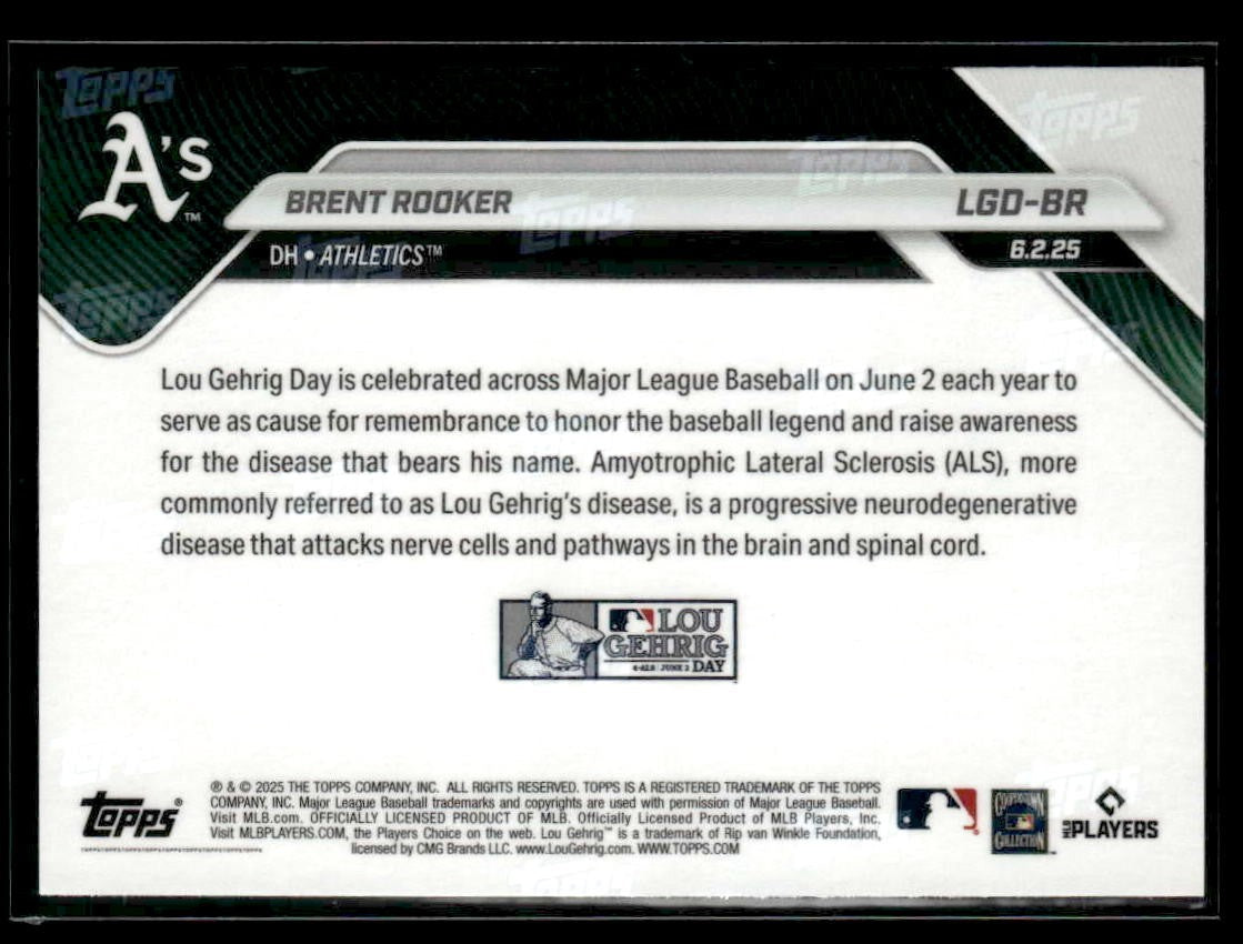 This is a sharp example of the 2025 Topps Now Lou Gehrig Day: Presented by Sarah Langs #LGD-BR featuring Brent Rooker.