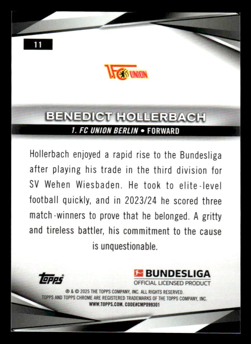 This is a sharp example of the 2025 Topps Sapphire Edition Bundesliga #11 featuring Benedict Hollerbach.