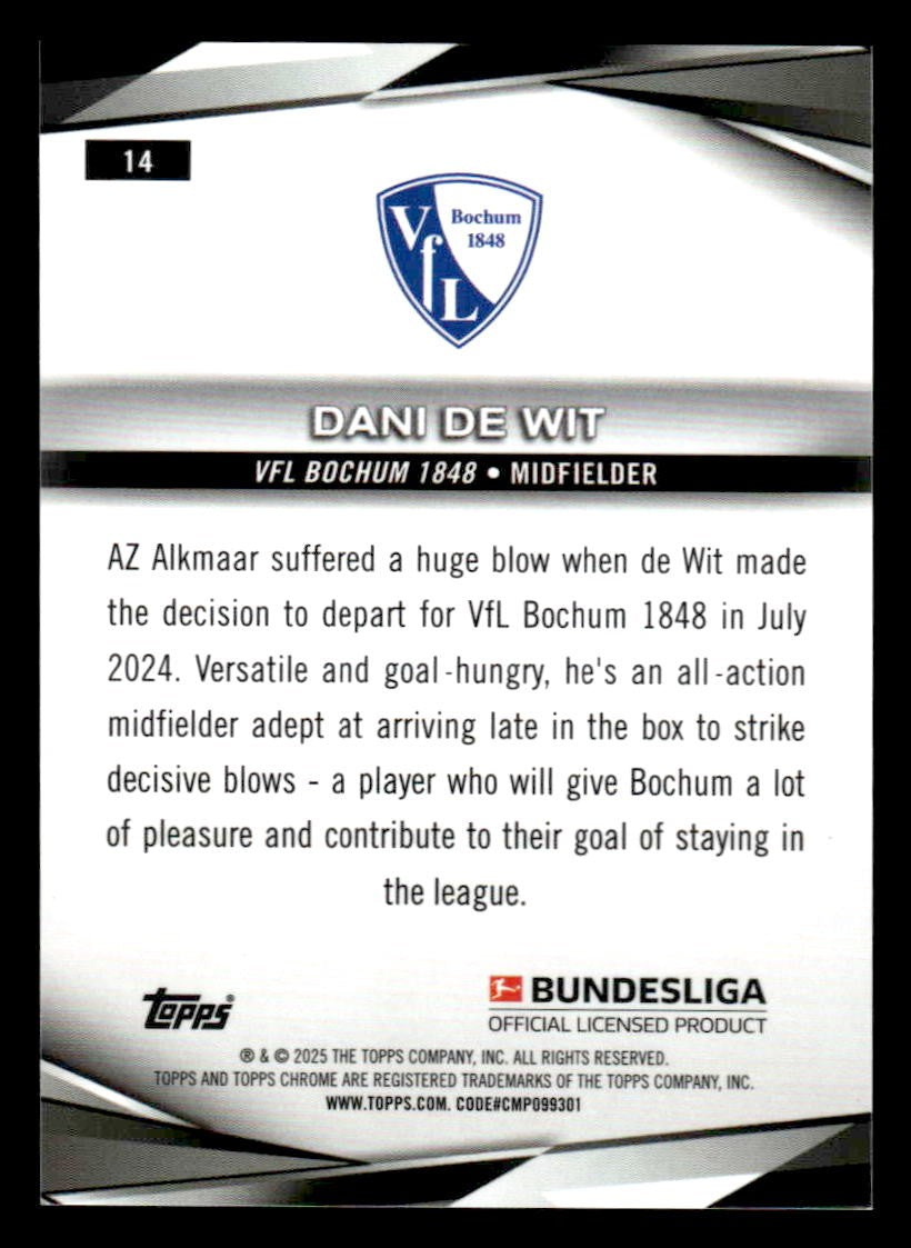 Dani De Wit played for the VFL Bochum 1848 in 2025, and this card is a standout from the Topps 2025 Topps Sapphire Edition Bundesliga release. Whether you're chasing rookies, SSPs, or building a premium collection, this card delivers.