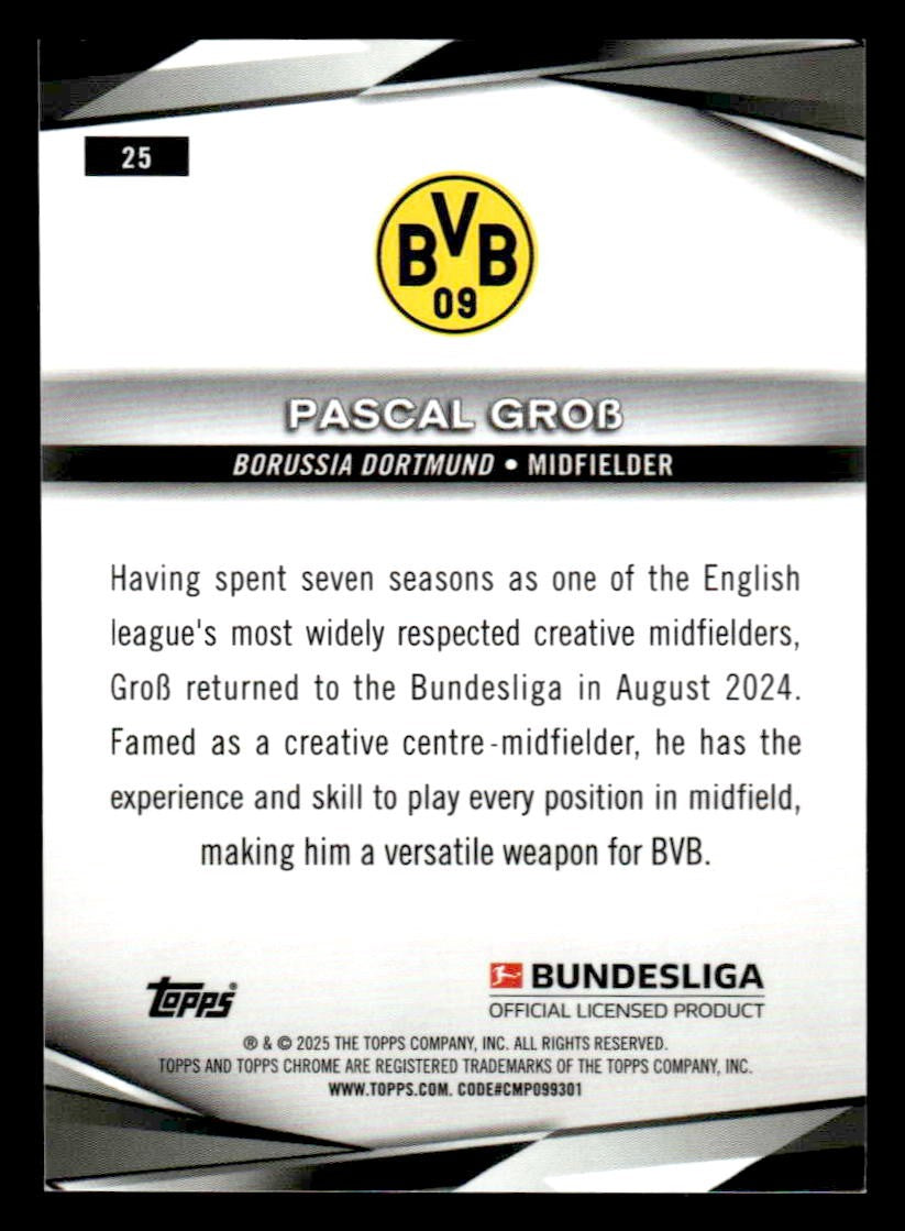 This is a sharp example of the 2025 Topps Sapphire Edition Bundesliga #25 featuring Pascal Grob.
