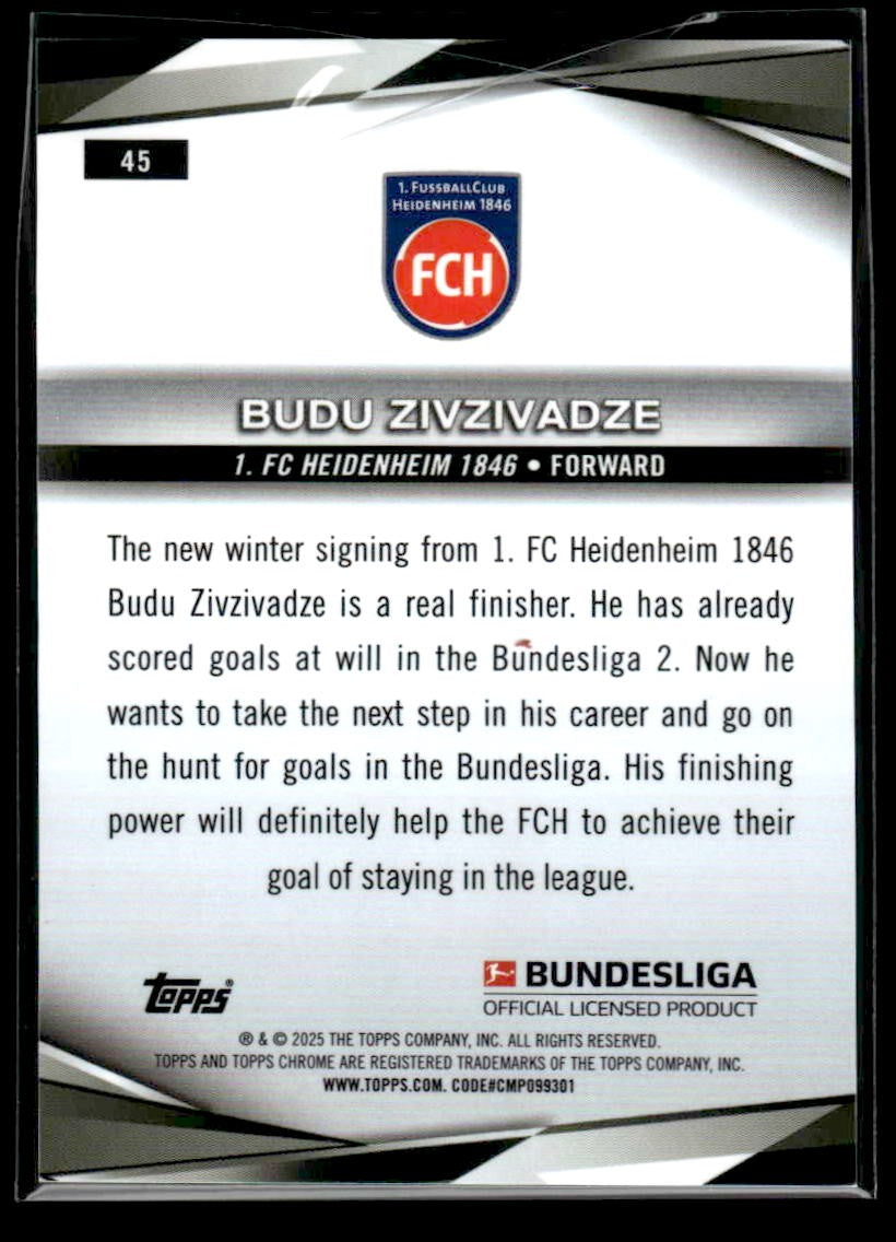 This is a sharp example of the 2025 Topps Sapphire Edition Bundesliga #45 featuring Budu Zivzivadze.