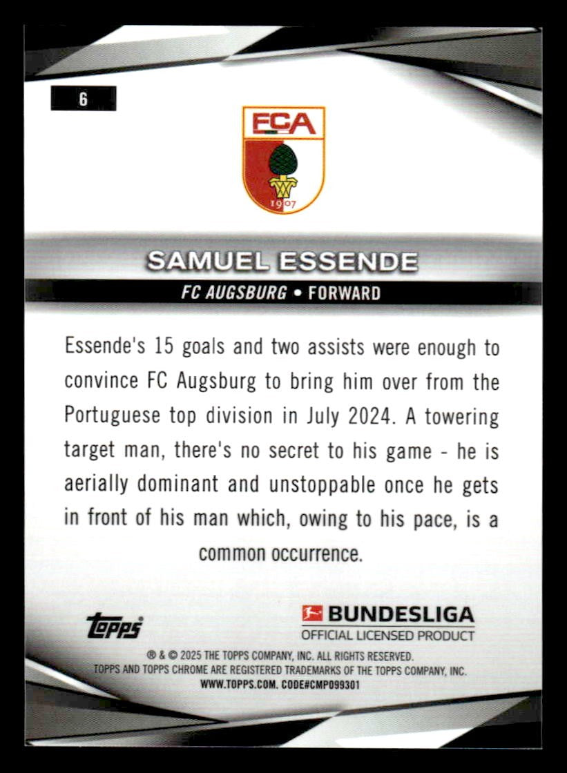 This is a sharp example of the 2025 Topps Sapphire Edition Bundesliga #6 featuring Samuel Essende.