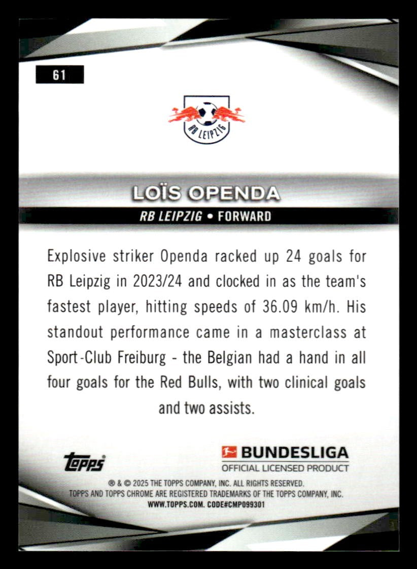 This is a sharp example of the 2025 Topps Sapphire Edition Bundesliga #61 featuring Lois Openda.