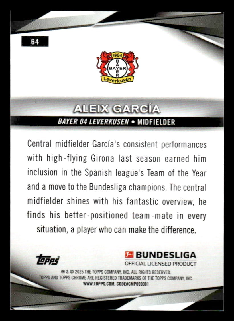 This is a sharp example of the 2025 Topps Sapphire Edition Bundesliga #64 featuring Aleix Garcia.