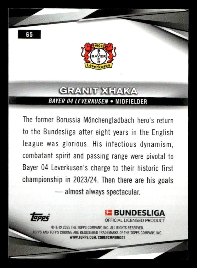 This is a sharp example of the 2025 Topps Sapphire Edition Bundesliga #65 featuring Granit Xhaka.