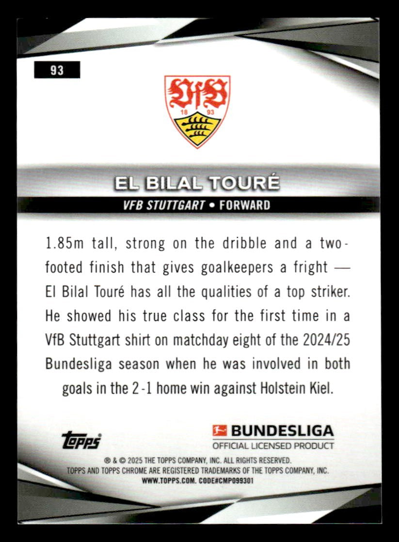 This is a sharp example of the 2025 Topps Sapphire Edition Bundesliga #93 featuring El Bilal Toure.
