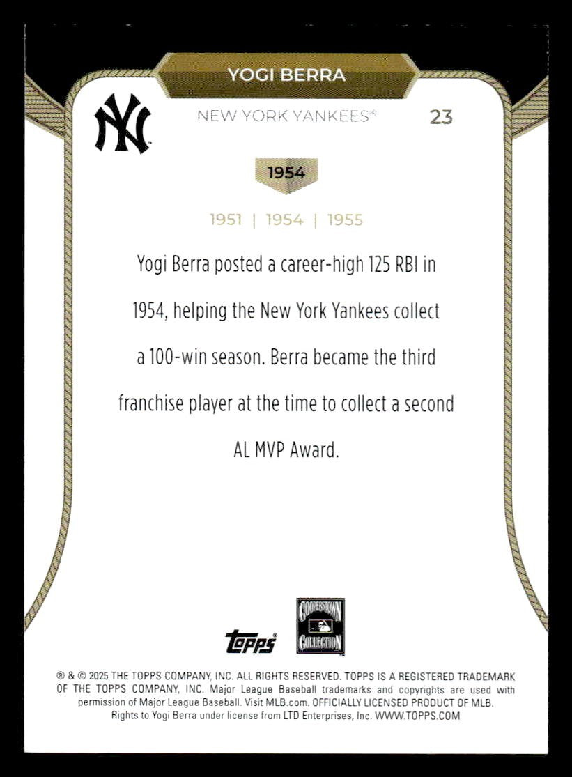 This is a nice example of a 2025 Topps Welcome to the Club: 3X MVP #23 Yogi Berra