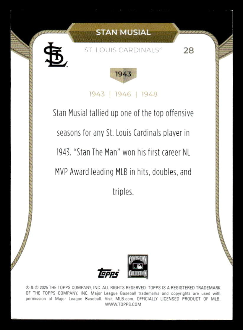 This is a nice example of a 2025 Topps Welcome to the Club: 3X MVP #28 Stan Musial