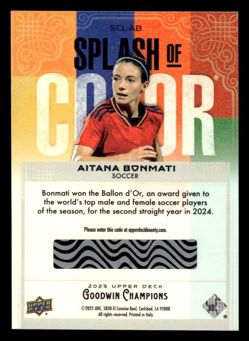 This is a sharp example of the 2025 Upper Deck Goodwin Champions #SCL-AB featuring Aitana Bonmati.