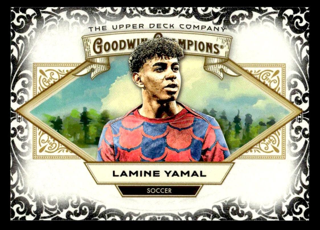 This is a sharp example of the 2025 Upper Deck Goodwin Champions #98 featuring Lamine Yamal.