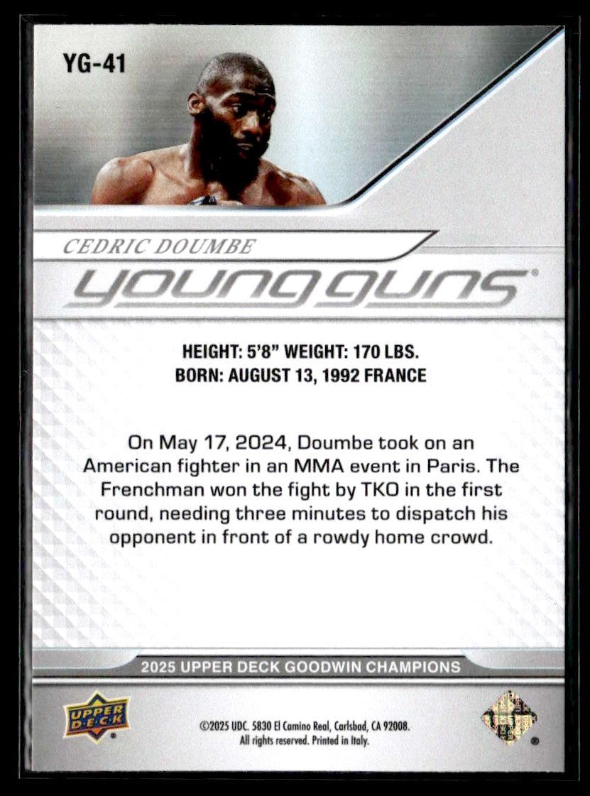 🥊 Cedric Doumbe — 2025 Upper Deck Goodwin Champions Young Guns #YG-41