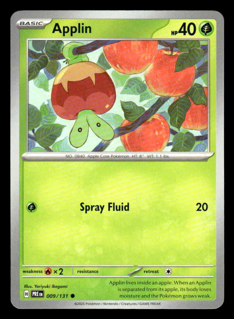 This is a nice example of a SV: Prismatic Evolutions #009/131 Applin .Other important information about this card: Common.Please check out our other listings for more great cards.