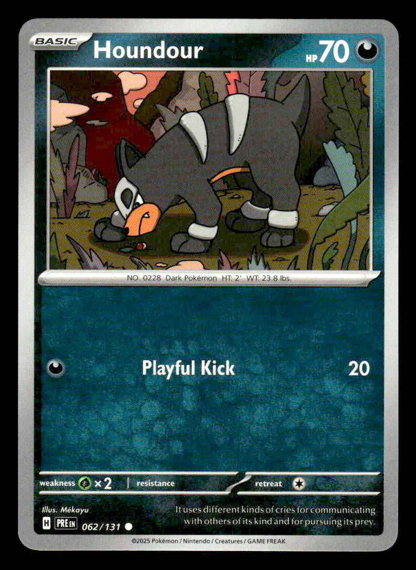 This is a nice example of a SV: Prismatic Evolutions #062/131 Houndour .Other important information about this card: Common.Please check out our other listings for more great cards.