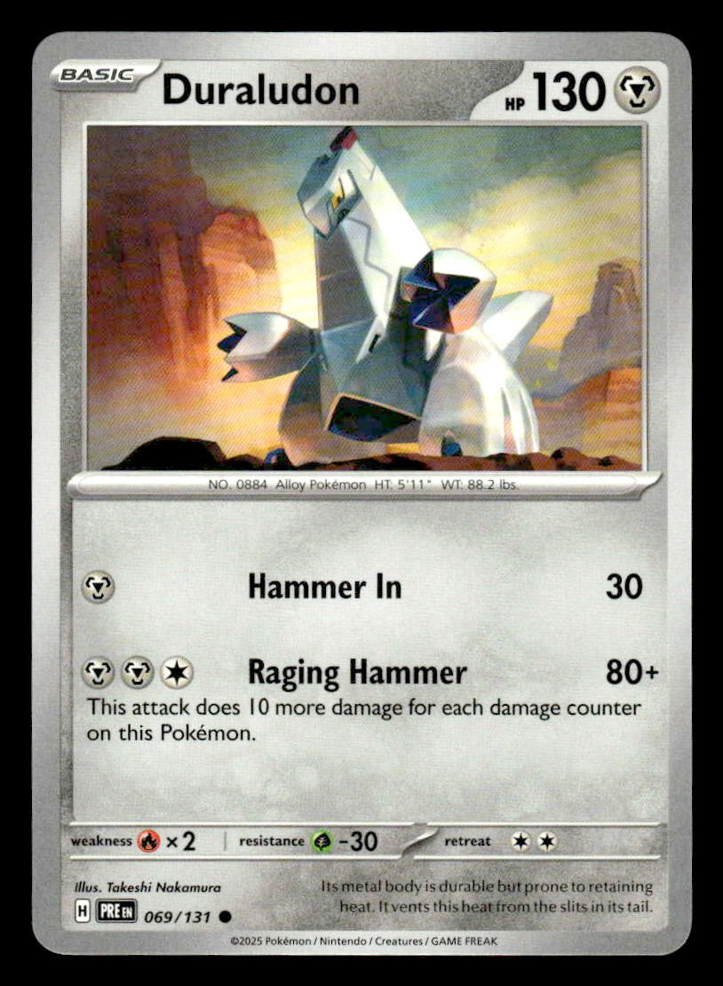 This is a nice example of a SV: Prismatic Evolutions #069/131 Duraludon .Other important information about this card: Common.Please check out our other listings for more great cards.