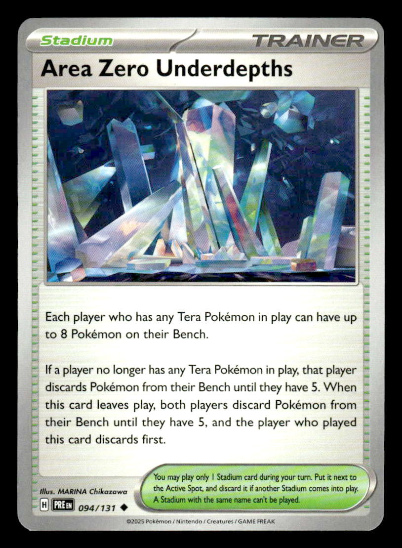 This is a nice example of a SV: Prismatic Evolutions #094/131 Area Zero Underdepths .Other important information about this card: Uncommon.Please check out our other listings for more great cards.