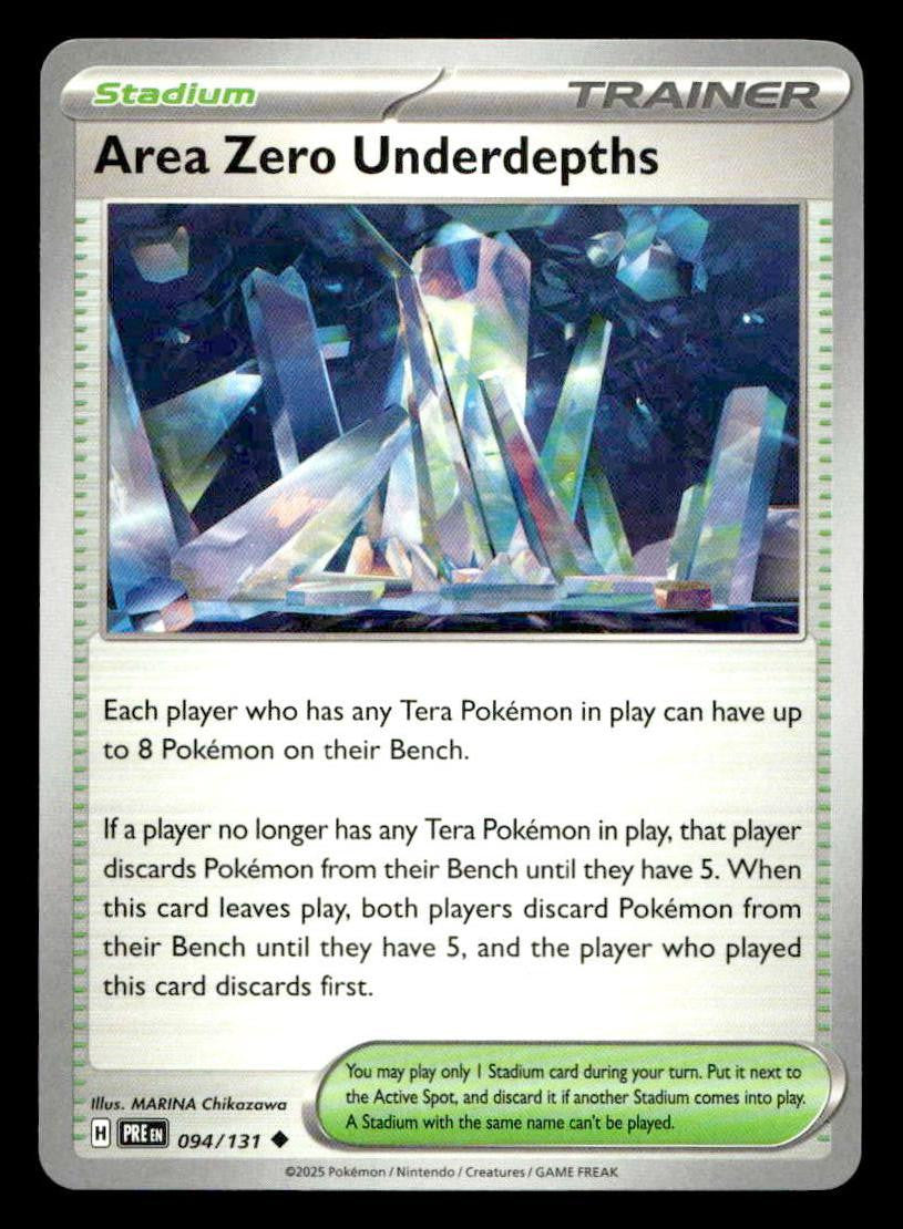 This is a nice example of a SV: Prismatic Evolutions #094/131 Area Zero Underdepths .Other important information about this card: Uncommon.Please check out our other listings for more great cards.