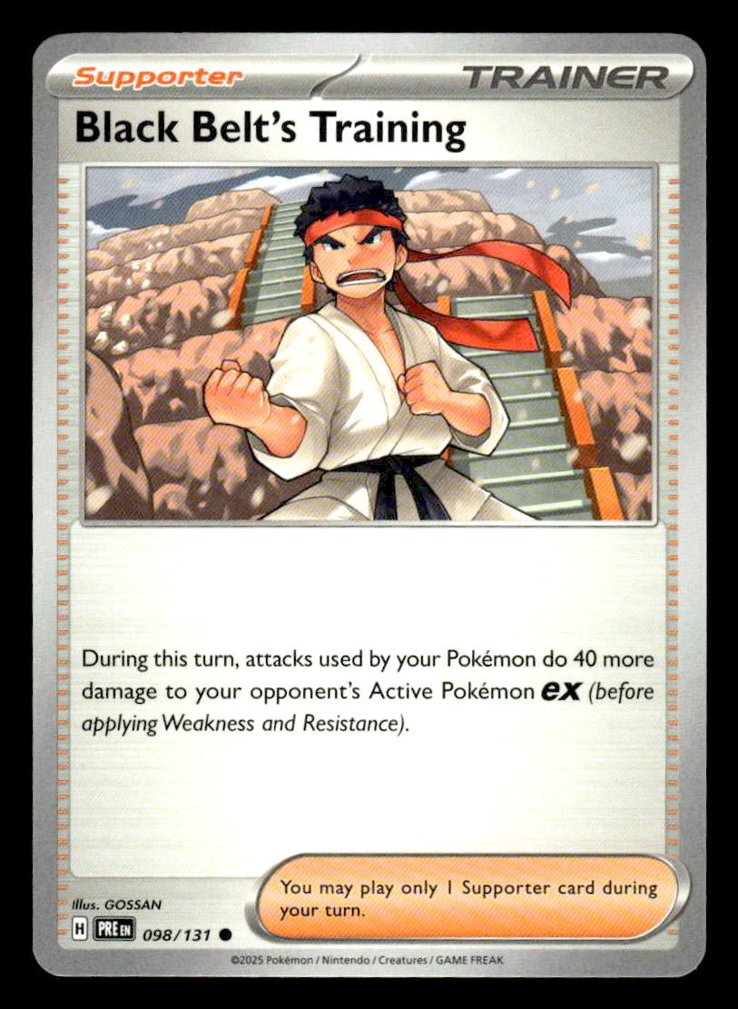 This is a nice example of a SV: Prismatic Evolutions #098/131 Black Belt's Training .Other important information about this card: Common.Please check out our other listings for more great cards.