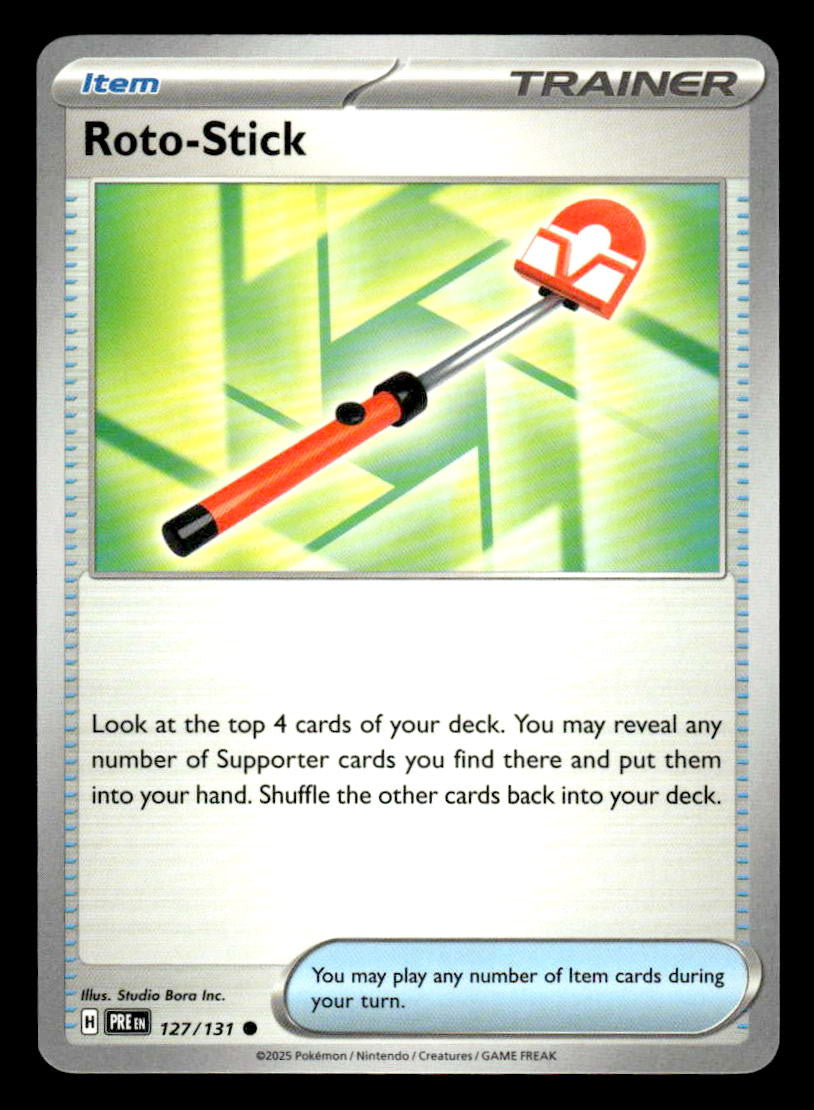 This is a nice example of a SV: Prismatic Evolutions #127/131 Roto-Stick .Other important information about this card: Common.Please check out our other listings for more great cards.