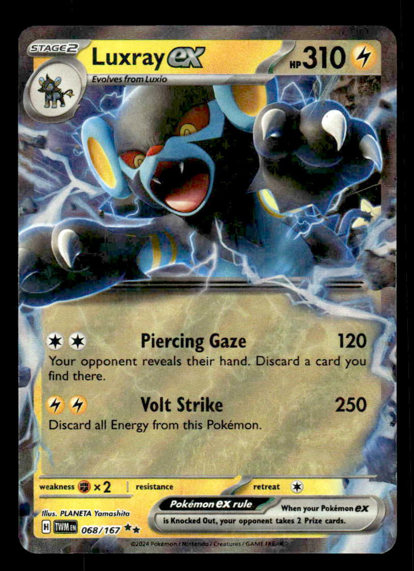 This is a nice example of a SV06: Twilight Masquerade #068/167 Luxray ex
