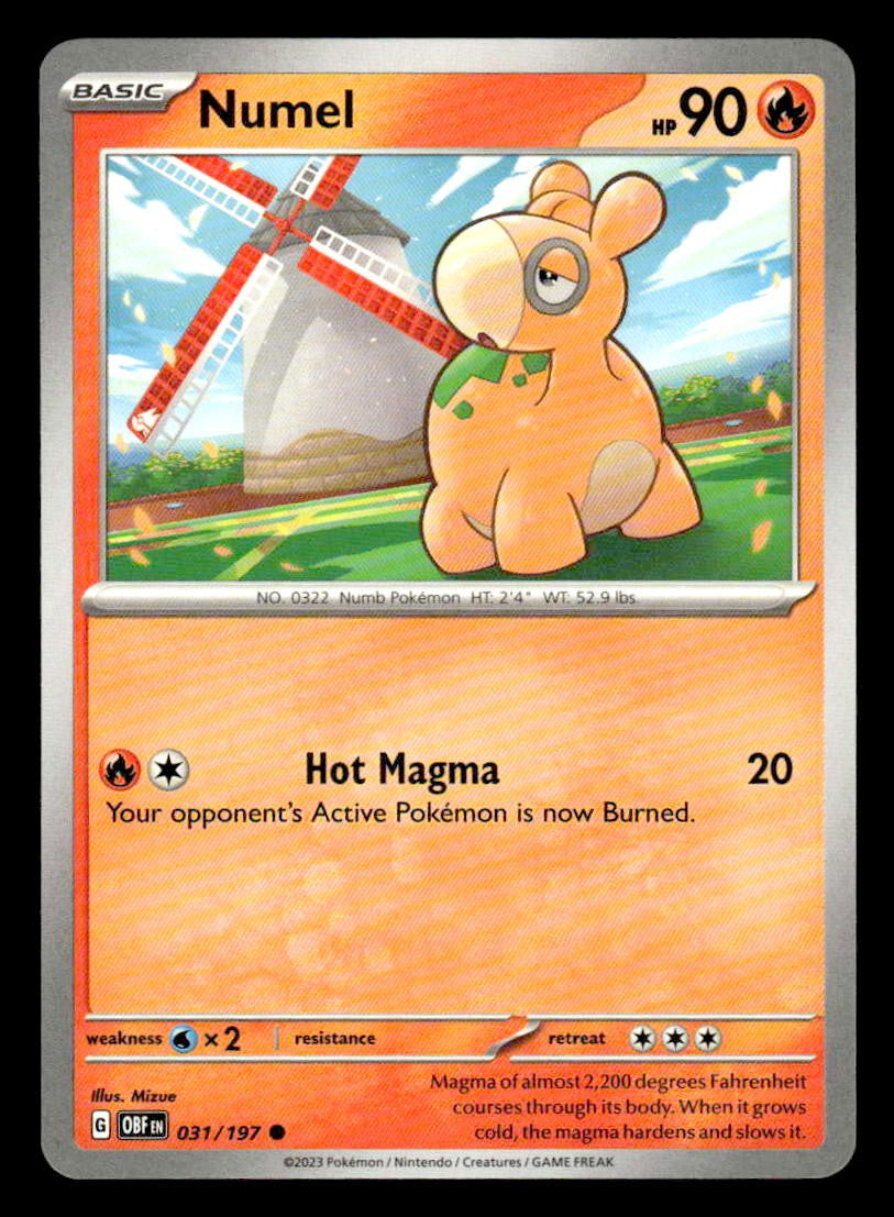 This is a nice example of a SV03: Obsidian Flames #031/197 Numel .Other important information about this card: Common.Please check out our other listings for more great cards.