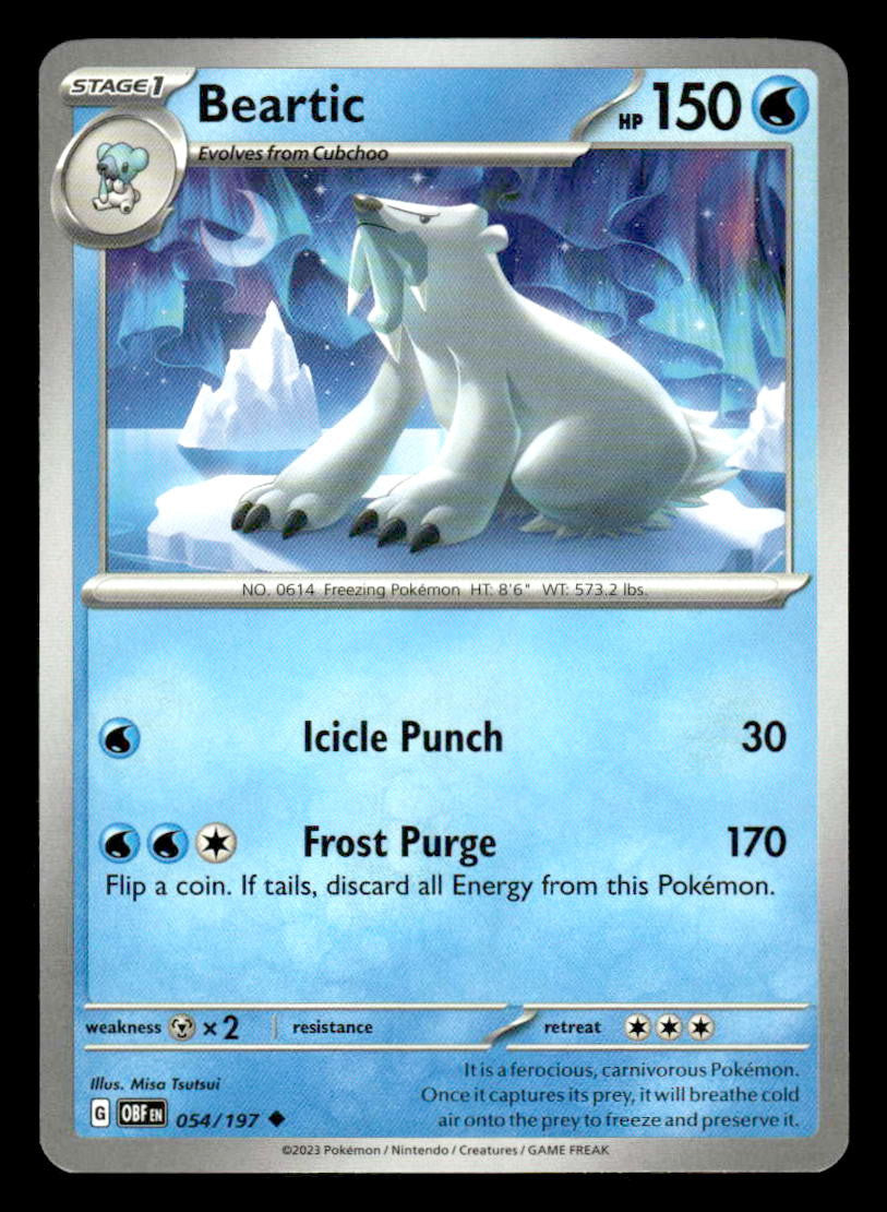 This is a nice example of a SV03: Obsidian Flames #054/197 Beartic .Other important information about this card: Uncommon.Please check out our other listings for more great cards.