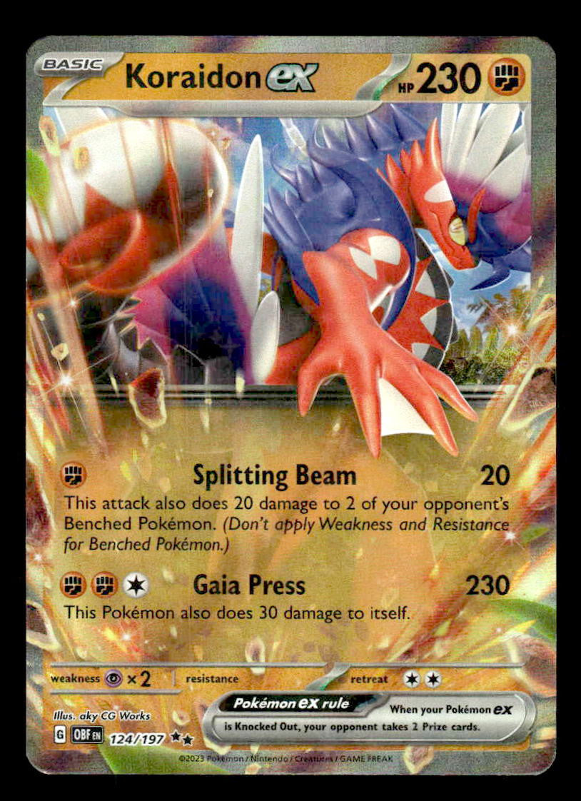 This is a nice example of a SV03: Obsidian Flames #124/197 Koraidon ex