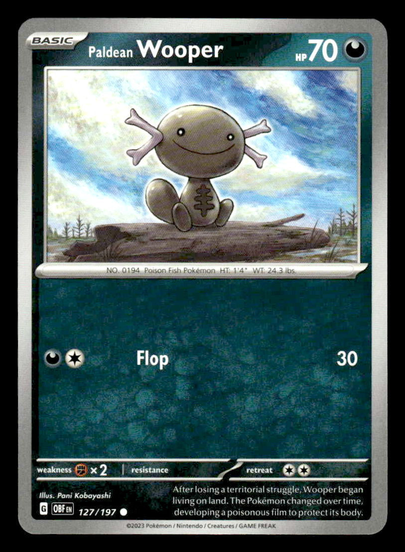 This is a nice example of a SV03: Obsidian Flames #127/197 Paldean Wooper .Other important information about this card: Common.Please check out our other listings for more great cards.