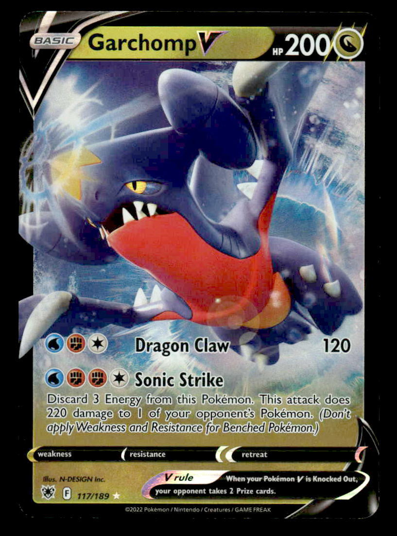 This is a nice example of a SWSH10: Astral Radiance #117/189 Garchomp V .Other important information about this card: Ultra Rare.Please check out our other listings for more great cards.