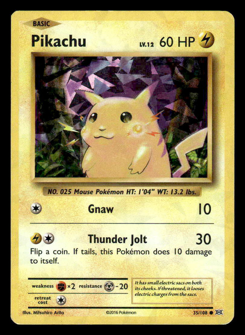This is a nice example of a XY - Evolutions #35/108 Pikachu .Other important information about this card:Cracked Ice Common.Please check out our other listings for more great cards.